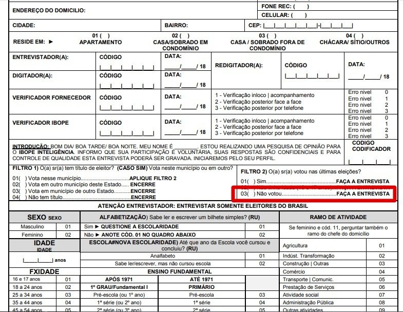 Ibope muda filtro em última pesquisa e só entrevista quem votou nas últimas eleições