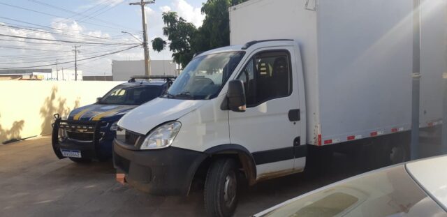 Em consulta aos sistemas da PRF, foi constatado que o caminhão da marca IVECO portava placas falsas e clonadas, e que possuía um registro de roubo.