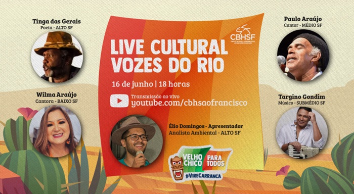 Como parte das atividades da campanha ‘Eu viro carranca para defender o Velho Chico’, o Comitê da Bacia Hidrográfica do Rio São Francisco (CBHSF), realiza, no dia 16 de junho, às 18h, a live Vozes do Rio.