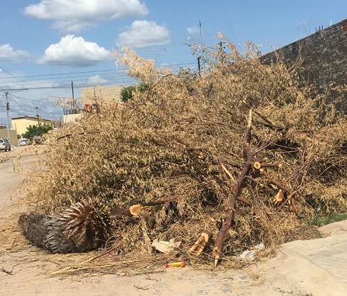 “Foi realizado uma limpeza no interior do terreno e, logo após, colocado na calçada/rua. No dia 19/01/22 foi solicitado para o setor da Prefeitura a retirada e até hoje nada. Já está espalhado na rua o lixo e bagaços diversos. E até hoje estou aguardando.”, relatou Cláudio.