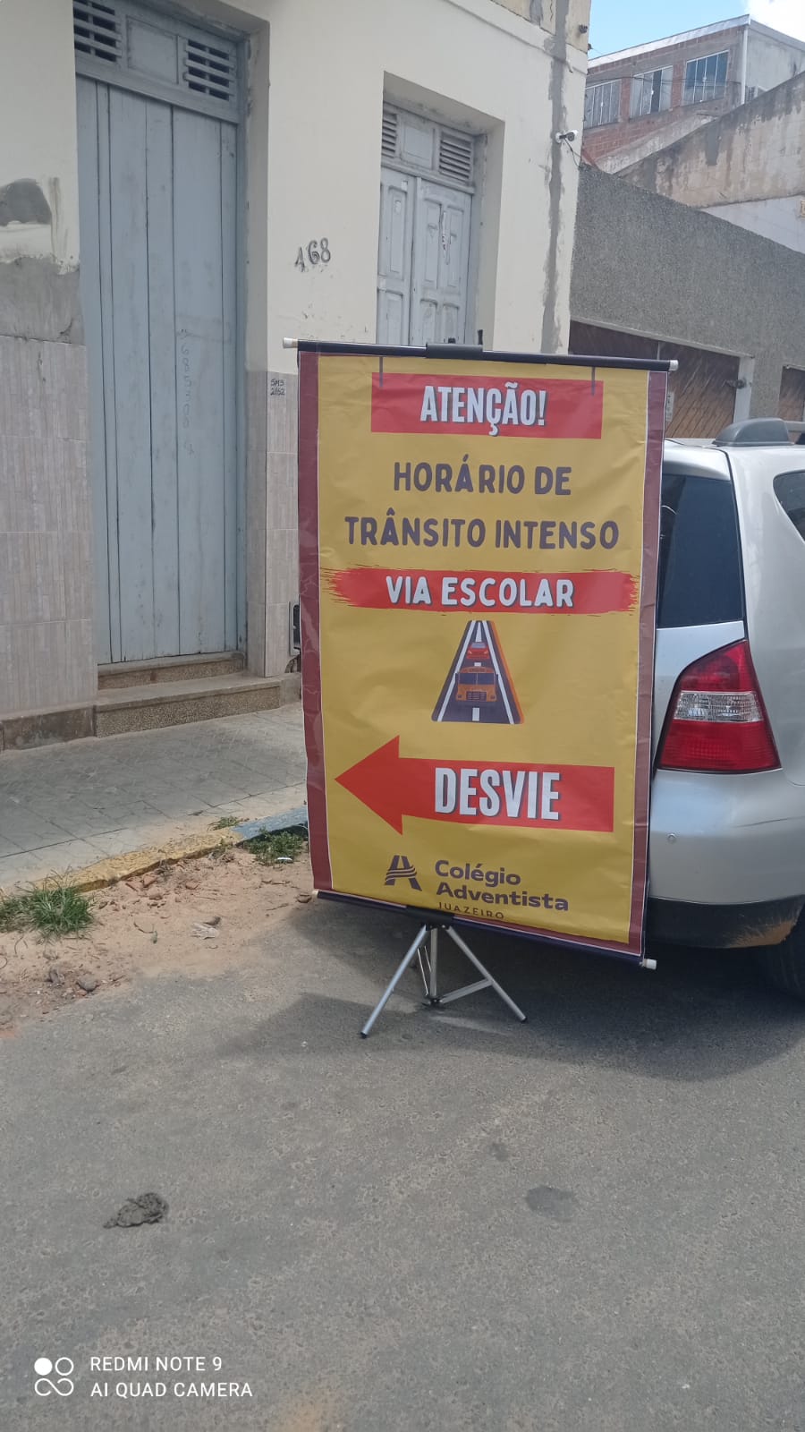 No horário de saída dos alunos, quando o tráfego é intenso na via, gerando constantes engarrafamentos, a instituição de ensino particular, colocou uma placa na esquina, indicando que os motoristas deveriam desviar da rua, pegando outra rota central da cidade. Dois funcionários da escola também estavam no local, orientando os motoristas a fazerem o desvio.