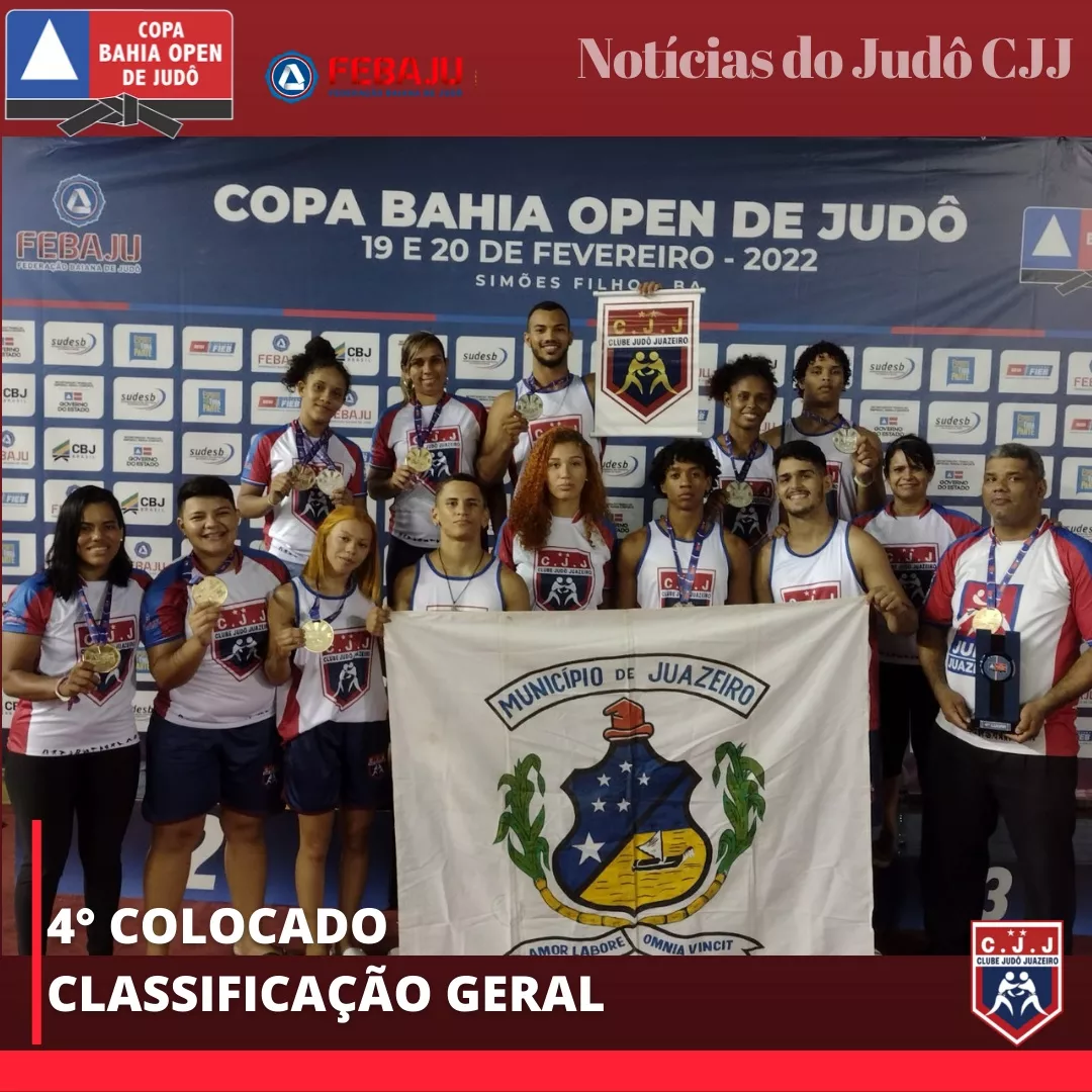 Com 16 medalhas, o Clube Judô Juazeiro ficou em 4º lugar na classificação geral da Copa Bahia Open 2022, realizada em Simões Filho, no último final de semana, 18 e 19 de fevereiro. A equipe, que mostrou muita força, técnica e habilidade, se manteve entre os grandes clubes do judô baiano conquistando sete medalhas de Ouro, seis medalhas de Prata e três medalhas de Bronze.