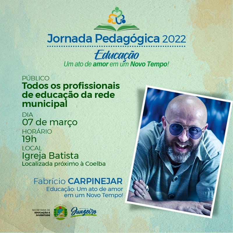 Em virtude das condições climáticas previstas para esta sexta-feira (04) em Juazeiro, que apresentam 80% de possibilidade de chuvas, a palestra magna da Jornada Pedagógica 2022 “Educação: um ato de amor em um Novo Tempo” foi transferida para a próxima segunda-feira (07). O local do evento também foi alterado e acontecerá na Igreja Batista, localizada próximo a Coelba, a partir das 19h.