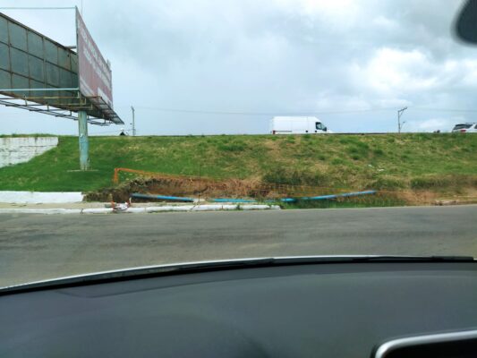 A professora apontou ainda um outro buraco, próximo ao local, que também pode ocasionar acidentes. Este fica no talude da banca.