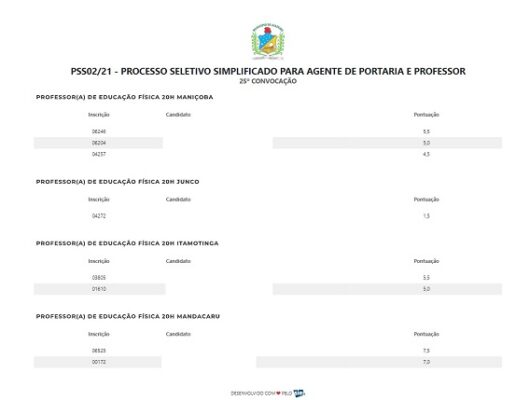 Em contato com o Preto no Branco, um professor de Educação Física, que foi aprovado no último concurso da Prefeitura de Juazeiro, no Norte da Bahia, realizado em 2021, reclama que, enquanto está aguardando ser convocado para trabalhar, a Secretaria de Educação e Juventude do município está convocando professores que participaram do Processo de Seleção Simplificada realizado no início deste ano.