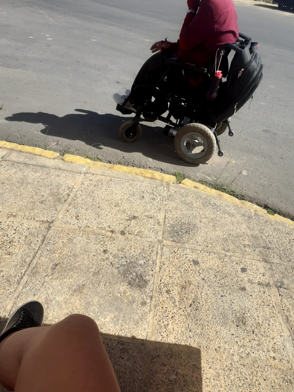 De acordo com ela, um cadeirante ficou no meio da rua, no ponto que fica na entrada do bairro Castelo Branco, por aproximadamente meia hora, no sol forte do início da tarde da última segunda-feira (25), devido ao desnível do meio-fio da calçada, que impede o acesso ao ponto de ônibus.