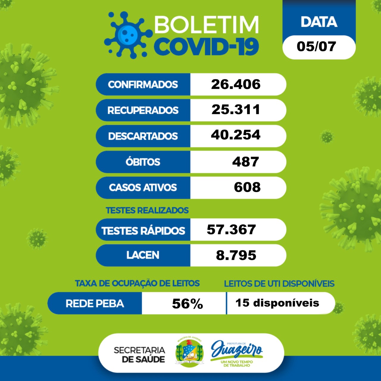 De acordo com o levantamento, 26.406 moradores foram infectados desde o início da pandemia na cidade, dos quais 25.311 já estão recuperados. Os casos descartados somam 40.254. Juazeiro tem 608 casos ativos do novo coronavírus.