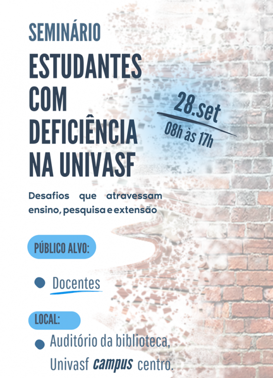 Fomentar um amplo debate sobre as práticas metodológicas adotadas no ensino superior é o objetivo do Seminário Estudantes com Deficiência na Univasf: desafios que atravessam ensino, pesquisa e extensão.