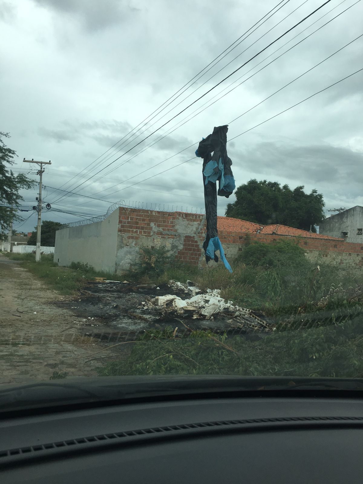 Um morador do bairro Country Clube, em contato com nossa redação nesta sexta-feira (23), relatou que ao passar pela rua Dezenove se deparou com uma cena que lhe chamou atenção. Num terreno baldio, tomado por mato e lixo, foi realizada uma queimada e um pedaço de pano foi parar na rede elétrica.