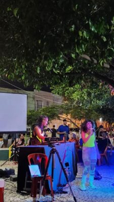 Dois shows. Um no festival, com banda, dançarinos e tudo o mais. Outro, na Portelinha, em um 19 de janeiro de 2023, que também foi sensacional, dançante, botando a galera para dançar, circulando, afetiva, sensual, e, além de tudo, cantando bem. E ligada, pois quando algo de errado sai do roteiro, ela para e diz: volta.