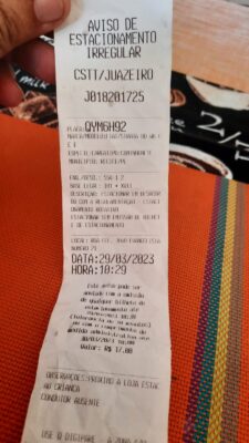 “Vendo por meio deste, expressar minha indignação com a empresa que gerência o Zona Azul na cidade de Juazeiro. Sou funcionário de uma empresa de telecomunicações, com sede no Recife e prestadora de serviços de transmissão de dados do TRE, PRF, JFPE, SESI, SEBRAE, SENAI, TJPE , BB, CEF e BRADESCO. Hoje, terminando um serviço em Petrolina, nos deslocamos para Juazeiro para conclusão de lançamento de fibra ótica. Nosso serviço é essencial, de utilidade pública e nos é garantido pela Lei 29, inciso VIII a livre parada e estacionamento. Estávamos em serviço, veículo identificado com logo da empresa, área sinalizada e, mesmo assim, a Zona azul de Juazeiro não levou em conta a determinação da Lei do Contran. Não fomos sequer avisados e foram logo notificando e gerando um valor de $ 17,00 ( dezessete reais)”, disse o prestador.
