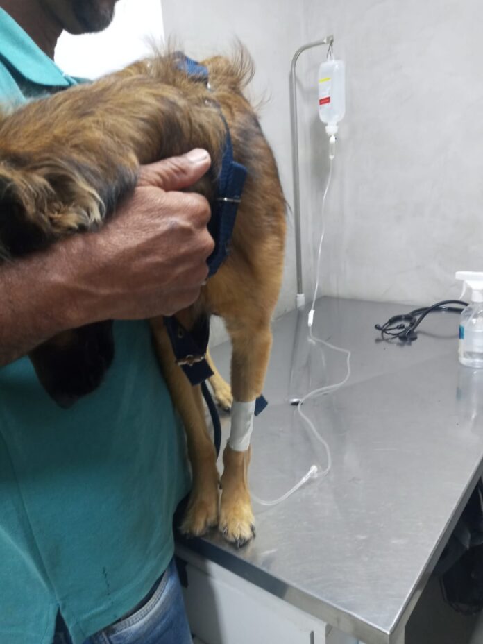Além do susto e do sofrimento do animal, a tutora teve que arcar com as despesas para tratamento do ferimento no seu cão de estimação.