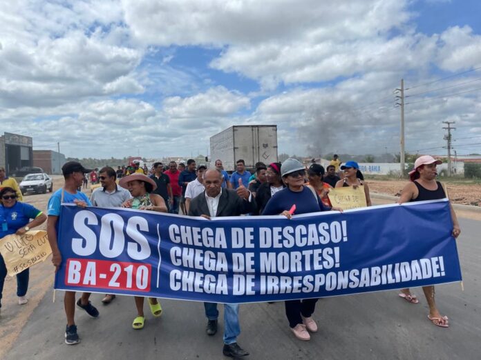 Em manifestação, moradores cobram fiscalização e conclusão da obra de duplicação da BA-210, em Juazeiro