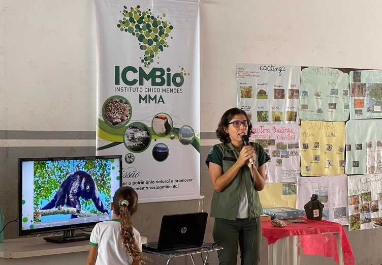 Palestras – Os momentos educativos realizados nas escolas tiveram como tema: ‘Conhecendo a Caatinga: fauna do Parque Nacional e Área de Proteção Ambiental do Boqueirão da Onça’ e foram conduzidos pela brigadista do ICMBio, Iris Alves, que abordou entre outros tópicos a biodiversidade da Caatinga, espécies ameaçadas e unidades de conservação. “A integração entre as instituições é de valiosa importância para divulgar e informar a população sobre as unidades de conservação. Trabalhar com alunos das séries iniciais possibilita despertar o interesse e destacar a importância da Caatinga e dessas áreas protegidas para a conservação da biodiversidade e cultura local”, avaliou Iris Alves.