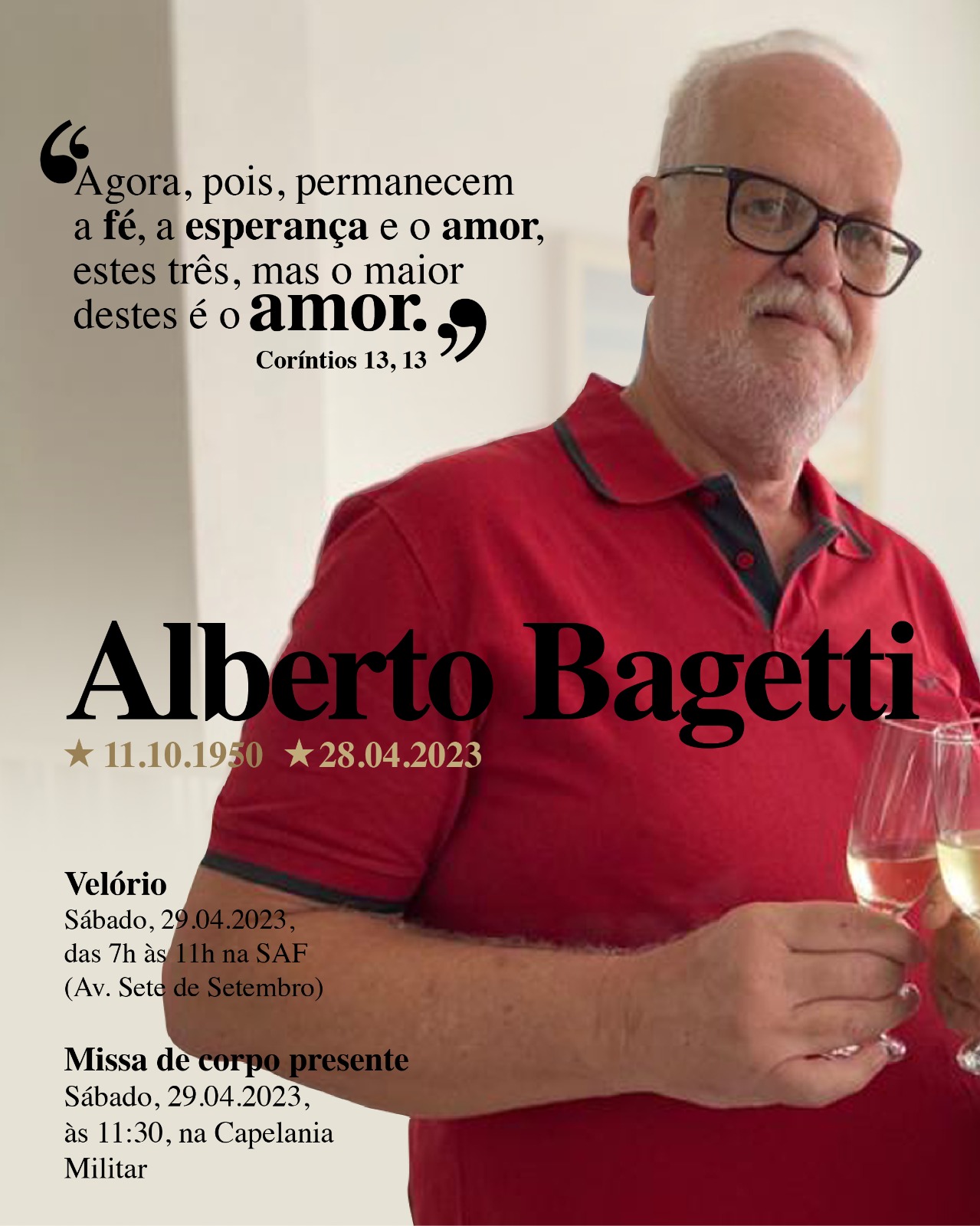 Neste momento de luto, nos solidarizamos com os familiares, amigos e colegas. Manifestamos nossa gratidão a Dr. Alberto e pedimos a Deus que conforte o coração dos seus entes queridos.