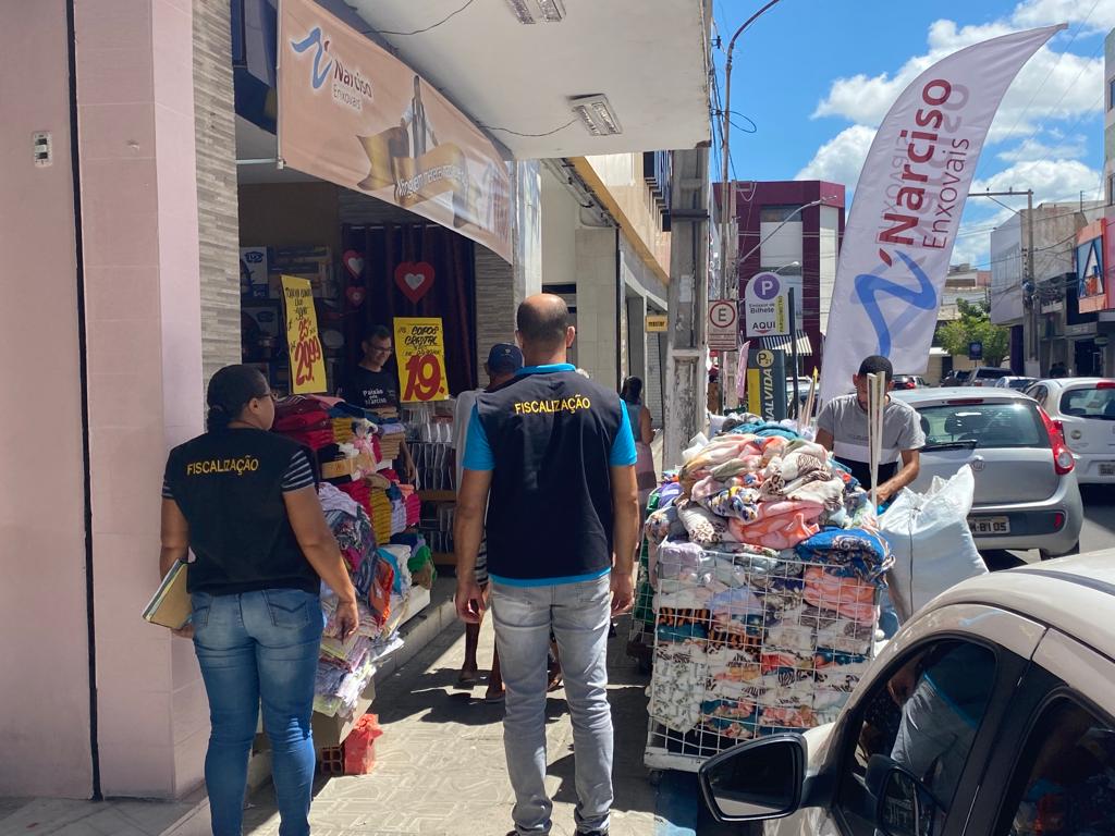 Em resposta a ousadia dos lojistas, nesta segunda-feira (08), os fiscais de postura da Secretaria de Meio Ambiente e Ordenamento Urbano realizaram ações no centro comercial com o objetivo de notificar os proprietários de estabelecimentos sobre a necessidade de desobstruir as calçadas.
