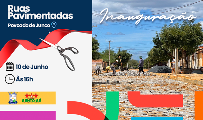 A Prefeitura de Sento-Sé, por meio da Secretaria de Obras e Serviços Públicos (Sosp), vai entregar a pavimentação da Avenida Alzira Barreto Cabral e da Rua Mariano Nunes da Silva, neste sábado (10), às 16h. As Ruas estão localizadas no povoado de Junco, distrito de Amaniú.