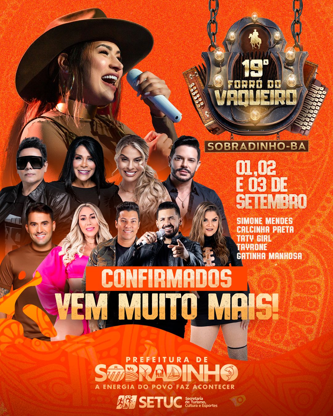 “Nos próximos dias estaremos divulgando as outras grandes atrações do evento, que abre vitrine também para os nossos artistas locais. Eles que são nossa riqueza cultural e destaques na nossa grade. Anote aí, dias 1, 2 e 3 de Setembro, estaremos de braços abertos para acolher com muita alegria a todos e todas que venham para nossa festa”, convidou o gestor.