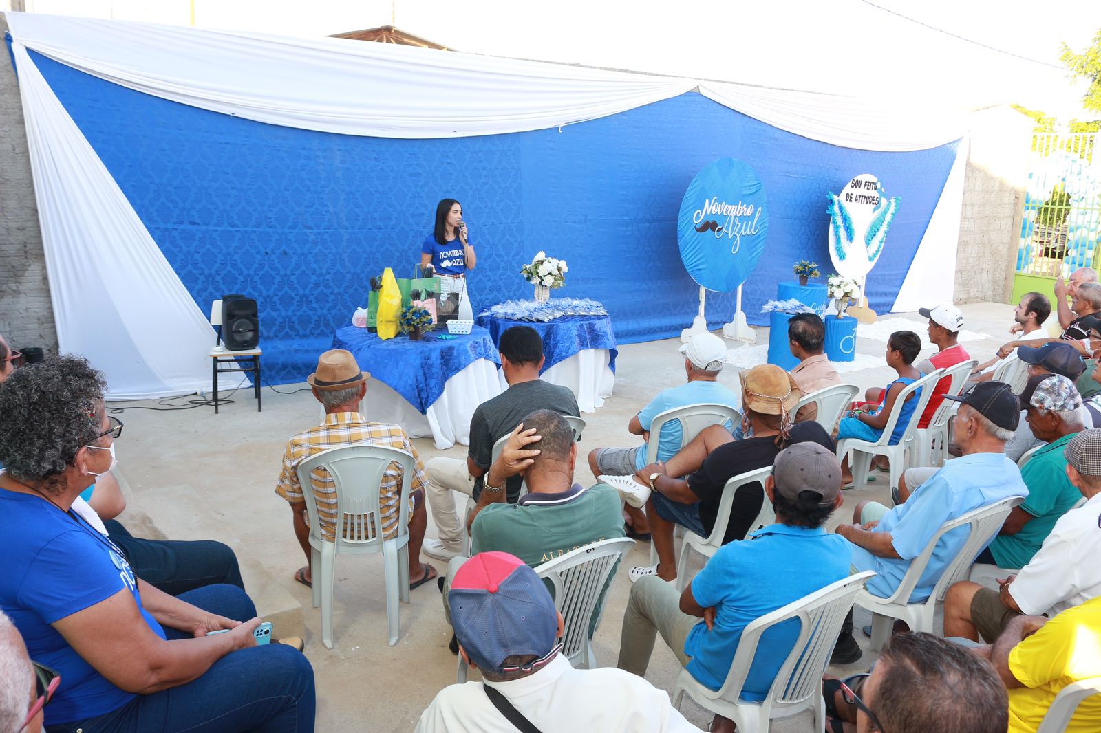 A atividade teve início com uma sala de espera dirigida, onde a equipe de saúde falou da importância do cuidado com a saúde e dos serviços que são oferecidos pelo poder público, com o objetivo de encorajar os homens a adotarem práticas saudáveis e buscar atendimento regularmente.