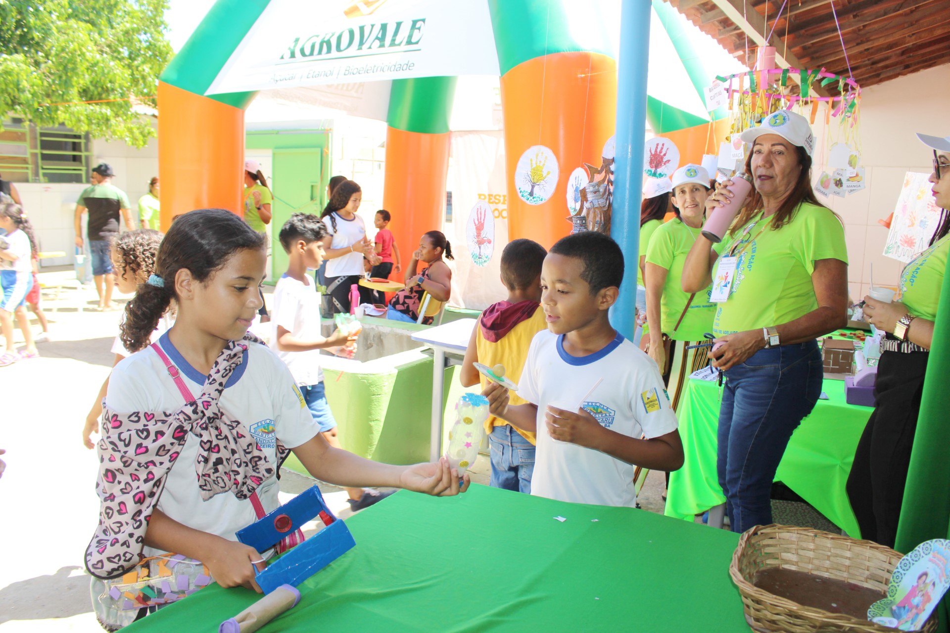 O evento, que contou com o apoio da Agrovale e da Univasf, começou às 8h, na escola Mandacaru, com os alunos da Educação Infantil, Fundamental I e II e Ensino Médio, apresentando pequenas invenções feitas a partir de material reciclável e ações dos projetos Explorum, no estande tecnológico, e Pachamama, da Secretaria de Educação do município, que trabalha com elementos da natureza.