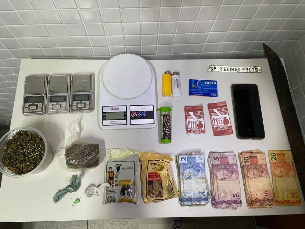Durante a ação policial, um homem, que não teve a identidade revelada, foi preso e com ele foram apreendidos 90 (noventa) gramas de substância análoga à maconha prensada; 65 (sessenta e cinco) gramas de substância análoga a maconha in natura; 04 (quatro) balanças de precisão; 01 (uma) Moto Falcon Preta; R$ 388,00(trezentos e oitenta e oito reais) em espécie; 02 (duas) petecas de substância analógica à maconha, totalizando 03(três) gramas; 01 (uma) trouxinha de substância analógica à crack; 01(um) facão; 01 (um) aparelho celular.