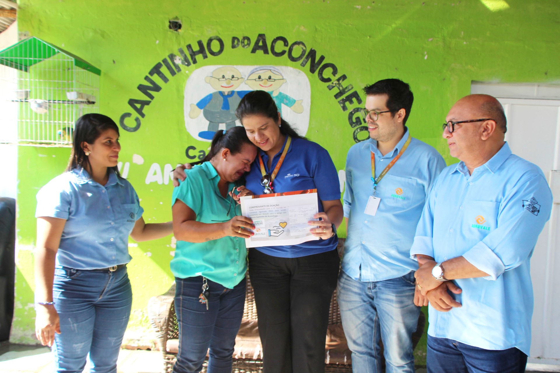 Os 64 idosos da casa de repouso Cantinho do Aconchego, em Petrolina – PE, tiveram uma manhã de muita alegria e emoção nesta sexta-feira (1º). Um grupo de representantes da Agrovale antecipou as festividades natalinas, entregando à direção da entidade, uma doação de R$ 14.008.50, valor arrecadado com as inscrições da II Corrida no Canavial, que marcou as comemorações dos 51 anos da empresa, no último dia 5 de novembro, em Juazeiro-BA, com a participação de 700 atletas.