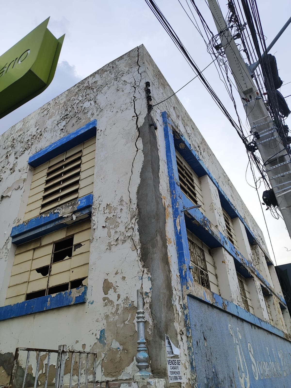 Abandonado pelo poder público, o prédio está cada dia mais degradado e sua estrutura dá sinais de que está comprometida. A fachada está com rachaduras, o que pode ser um indicativo de problemas mais sérios.