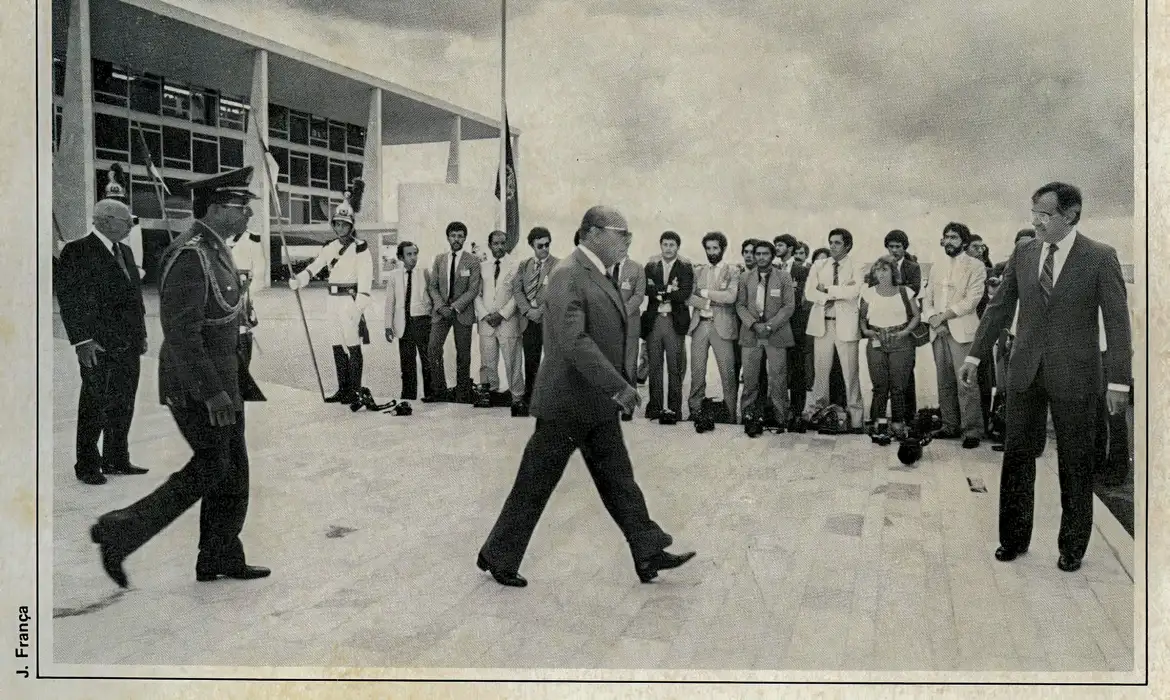 “Imagine você trabalhar todos os dias no Palácio do Planalto para cobrir as audiências e não ter acesso ao gabinete. Nós começamos a reclamar com a assessoria, mas não adiantou”, recorda Sérgio Marques. Até que, na tarde do dia 24 de janeiro de 1984, uma terça-feira, diante de tantas limitações, os fotógrafos credenciados resolveram colocar as câmeras no chão assim que o presidente desceu a rampa.