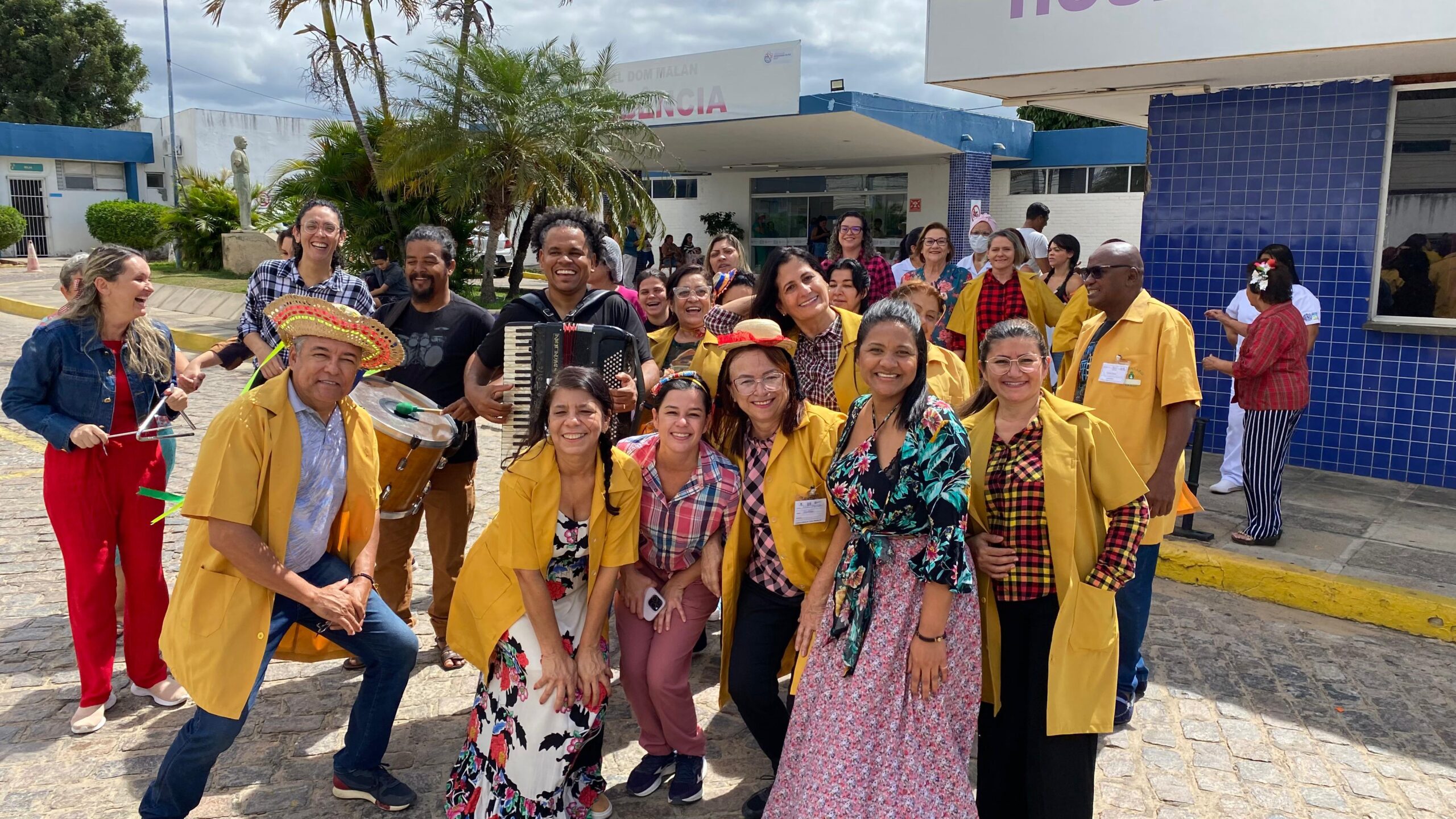 Um trio pé de serra encheu de forró os corredores e alas do Hospital Dom Malan da rede estadual de saúde em Petrolina, nesta quarta-feira (26). O cantor e sanfoneiro Ivan Greg, estendeu os festejos juninos aos funcionários e pacientes da unidade de saúde, ganhando o reforço no triângulo da diretora administrativa Ingride Lima. Um talento que a bacharel em gestão de pessoas experimentou e gostou. ” O que nós queremos é unir forças e talentos para oferecer bem-estar aos nossos pacientes, ” frisou Ingride.