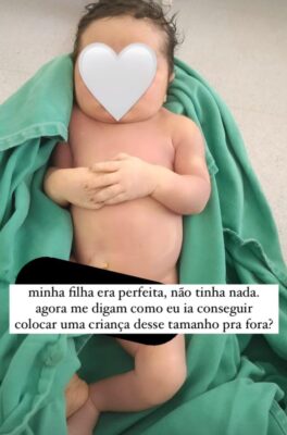 “Dei entrada na maternidade no dia 17 de janeiro deste ano, com 41 semanas de gestação. Quando cheguei ao hospital, estava com 6cm de dilatação. Porém, de 11h até 14h não dilatou nada mais, mesmo assim, só mandavam eu andar, para dilatar mais. Minha filha estava pesando 4kg e tinha 61 cm. Eu, mãe de primeira viagem, estava sem passagem para conseguir ter um parto normal, mesmo assim, ficaram forçando para que tivesse minha filha de parto normal”.