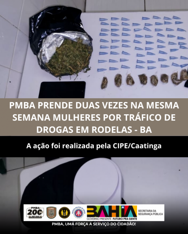 Policiais da Companhia Independente de Policiamento Especializado (CIPE-Caatinga), prenderam, nesta sexta-feira (30), duas mulheres por tráfico de drogas, em Rodelas, Norte da Bahia.