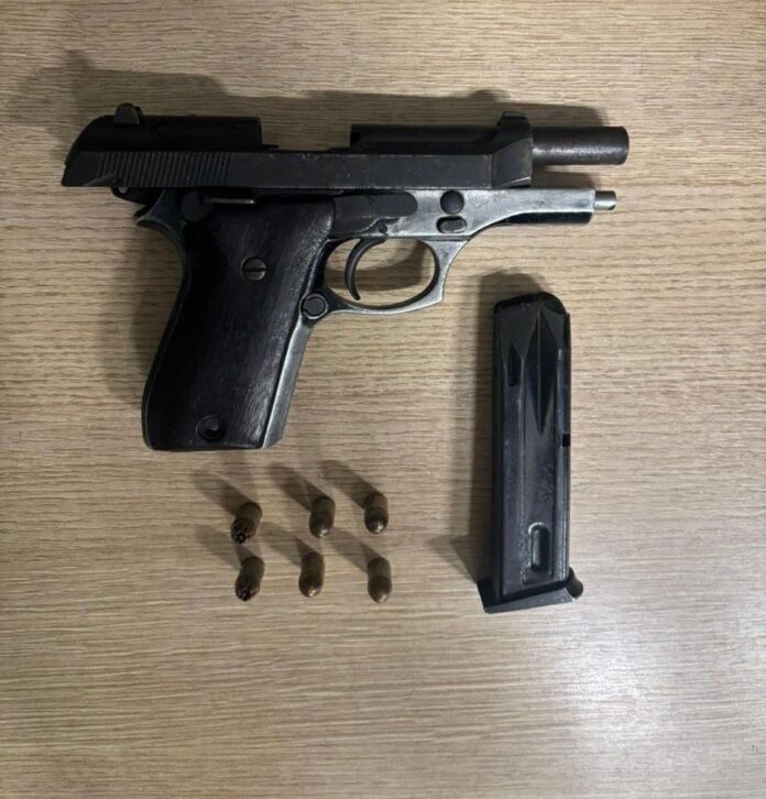 01 Revólver Taurus, Calibre 38, (oxidado preto) numeração suprimida, capacidade para 6 munições; 01 Pistola Taurus, Calibre 380 (oxidado), Modelo 58S, numeração suprimida. 01 carregador com Capacidade para 12 munições.