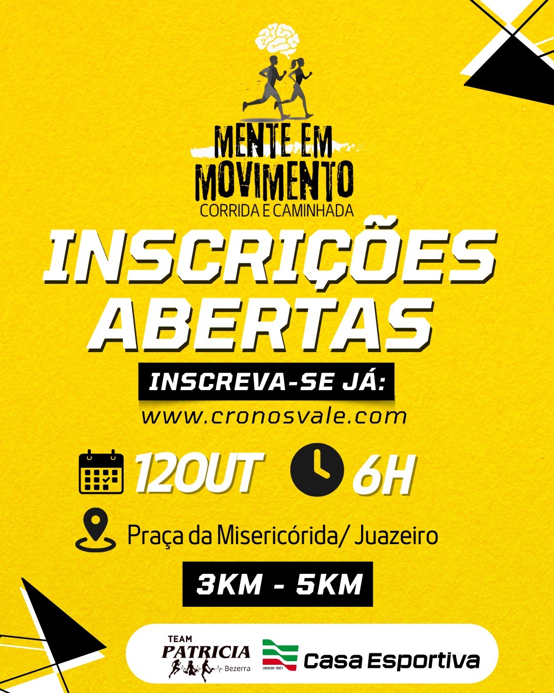 No dia 12 de outubro, Juazeiro será palco de um grande evento em prol da saúde física e emocional: a Corrida e Caminhada Mente em Movimento. A concentração será às 6h da manhã, na Praça da Misericórdia, de onde os participantes sairão em um percurso especial pelas ruas da cidade.