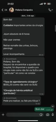 Outra vítima denunciou que o suspeito também já agiu ofertando intermediação em cirurgias, que, mesmo após envio de pagamento, nunca foram realizadas.
