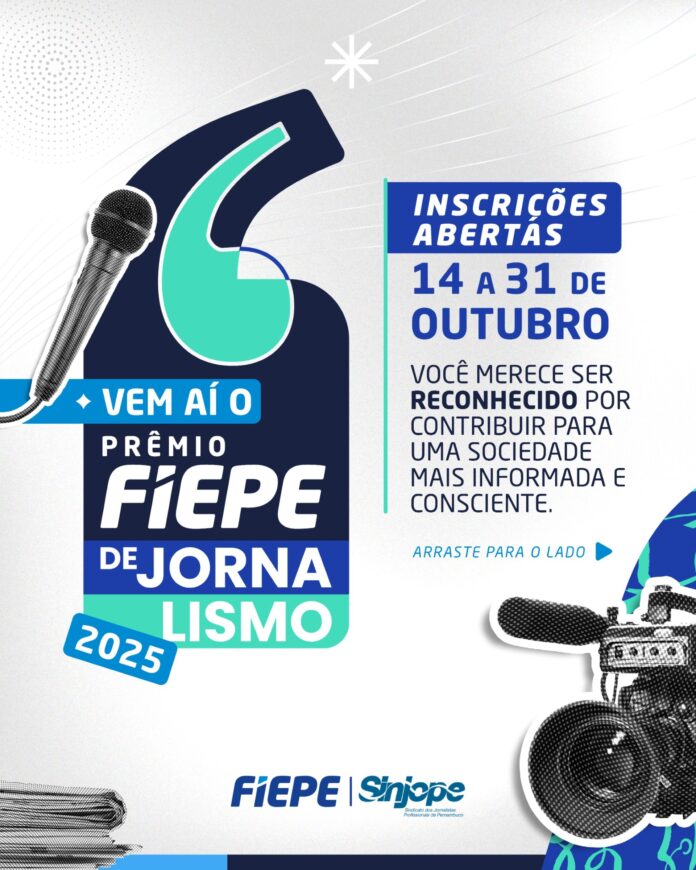 O concurso jornalístico realizado pela Federação das Indústrias do Estado de Pernambuco, para dar maior visibilidade ao setor industrial, vai premiar os melhores trabalhos jornalísticos nas categorias impresso, internet, radiojornalismo/podcast e vídeojornalismo, veiculados entre 1º de novembro de 2024 a 31 de outubro de 2025.