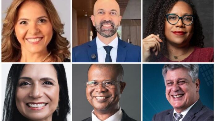 Concorrem a uma vaga no TRT-BA os seguintes candidatos: Christiane Gurgel; Victor Gurgel; Paloma Peruna; Mirela Possídio; Roberto Oliveira e Marcos Flávio Rhem.