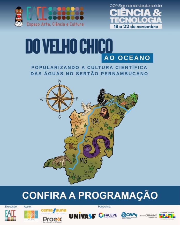“Ao valorizar o Velho Chico como elo entre o Sertão e o oceano, o evento busca ampliar a consciência sobre a responsabilidade compartilhada na conservação dos recursos hídricos e na construção de uma cultura científica mais inclusiva e territorializada”, destaca a professora do Colegiado de Ciências Biológicas e diretora do EACC, Patrícia Nicola, sobre o evento. A programação detalhada e outras informações podem ser obtidas no site e no Instagramdo EACC.