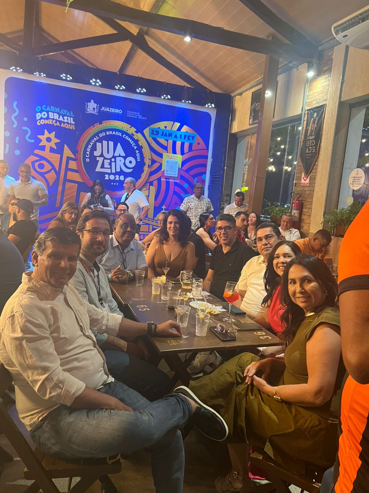 Representantes da Diretoria Executiva da Associação Comercial, Industrial e Agrícola de Juazeiro (Aciaj) participaram, na noite desta segunda-feira (17), do lançamento oficial do Carnaval 2026 de Juazeiro. Estiveram presentes o presidente George Falcão, o diretor Murilo Matos, a presidente do CMEC, Liz Sampaio, e o gerente regional do Sebrae, Carlos Cointeiro, além de convidados.