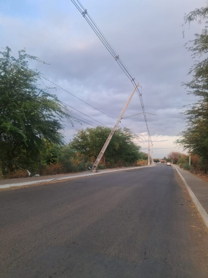 “Imagina o caos que esse problema pode trazer. Gostaria de chamar a atenção das autoridades para que medidas sejam tomadas antes que o pior aconteça! Vão esperar o poste cair como foi no bairro Maria Goretti?”, questionou.