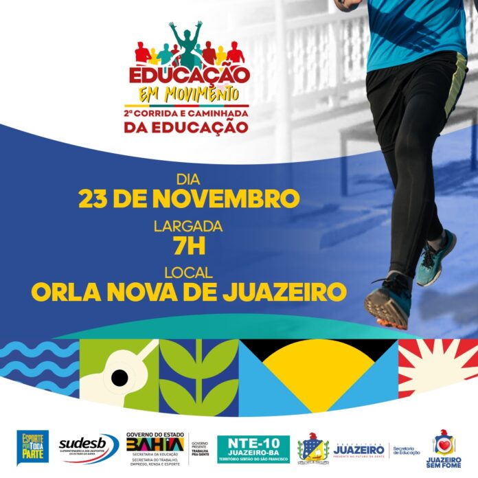 O Núcleo Territorial de Educação/NTE 10, por meio do Programa de Atenção à Saúde e de Valorização do Professor e do Trabalhador/PASVAP, e a Secretaria de Educação de Juazeiro irão realizar, no próximo domingo (23), a II Corrida e Caminhada da Educação em Movimento. O evento vai reunir profissionais e estudantes das redes municipal e estadual de educação.