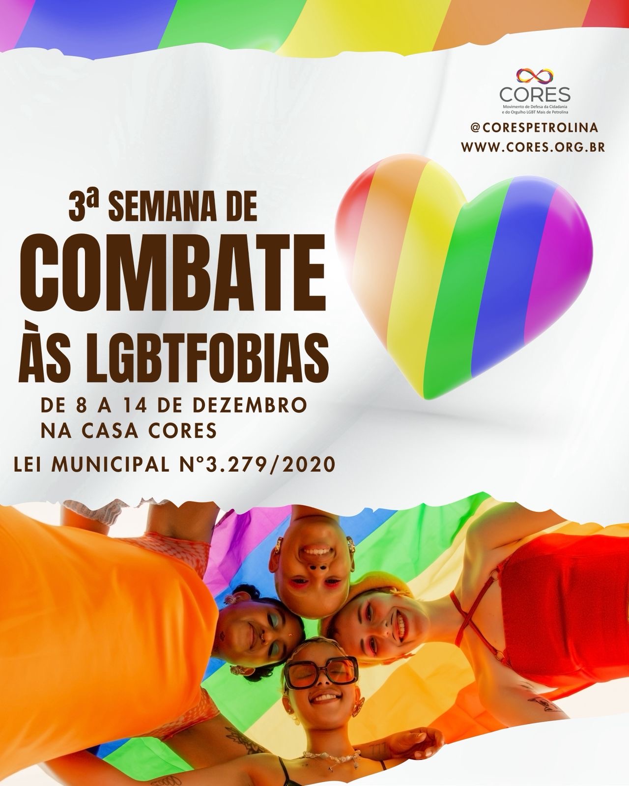 A Organização da Sociedade Civil Cores – Movimento de Defesa da Cidadania e do Orgulho LGBT+ realiza, de 8 a 14 de dezembro, a 3ª Semana de Combate às LGBTQIAfobias de Petrolina. Instituído pela Lei Municipal nº 3.279/2020, de autoria do vereador Gilmar Santos (PT), o evento integra o calendário oficial da cidade e reafirma o compromisso com os direitos humanos, o enfrentamento às violências e a promoção da cidadania LGBTQIA+ no sertão pernambucano.