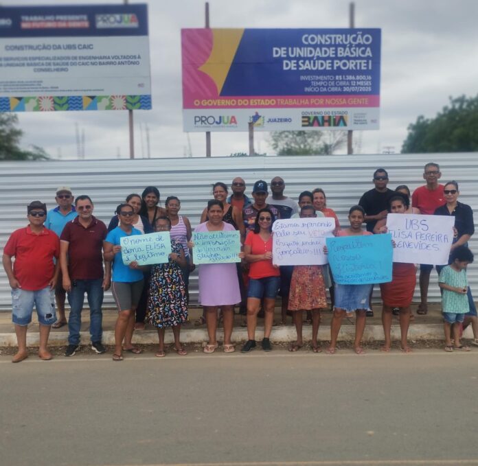 Os moradores da Malhada da Areia e Antônio Conselheiro, em Juazeiro, se reuniram na manhã deste domingo (7) para uma manifestação contra o PL do Vereador Gleidson Azevedo que nomeia a Unidade Básica de Saúde, que está sendo construída nas comunidades de “Antônio Lázaro Silva”, ex-deputado baiano. A escolha do nome do parlamentar vem sendo criticada pelos moradores que pedem que a UBS receba o nome de alguém que represente a comunidade. O PL já foi aprovado na Câmara de Vereadores e agora aguarda a sanção do prefeito Andrei Gonçalves.