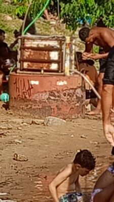 “Tem uma bomba na beira d’água. Tanta de criança e essa bomba aqui. Deveria existir uma fiscalização. Isso aqui está um perigo”.