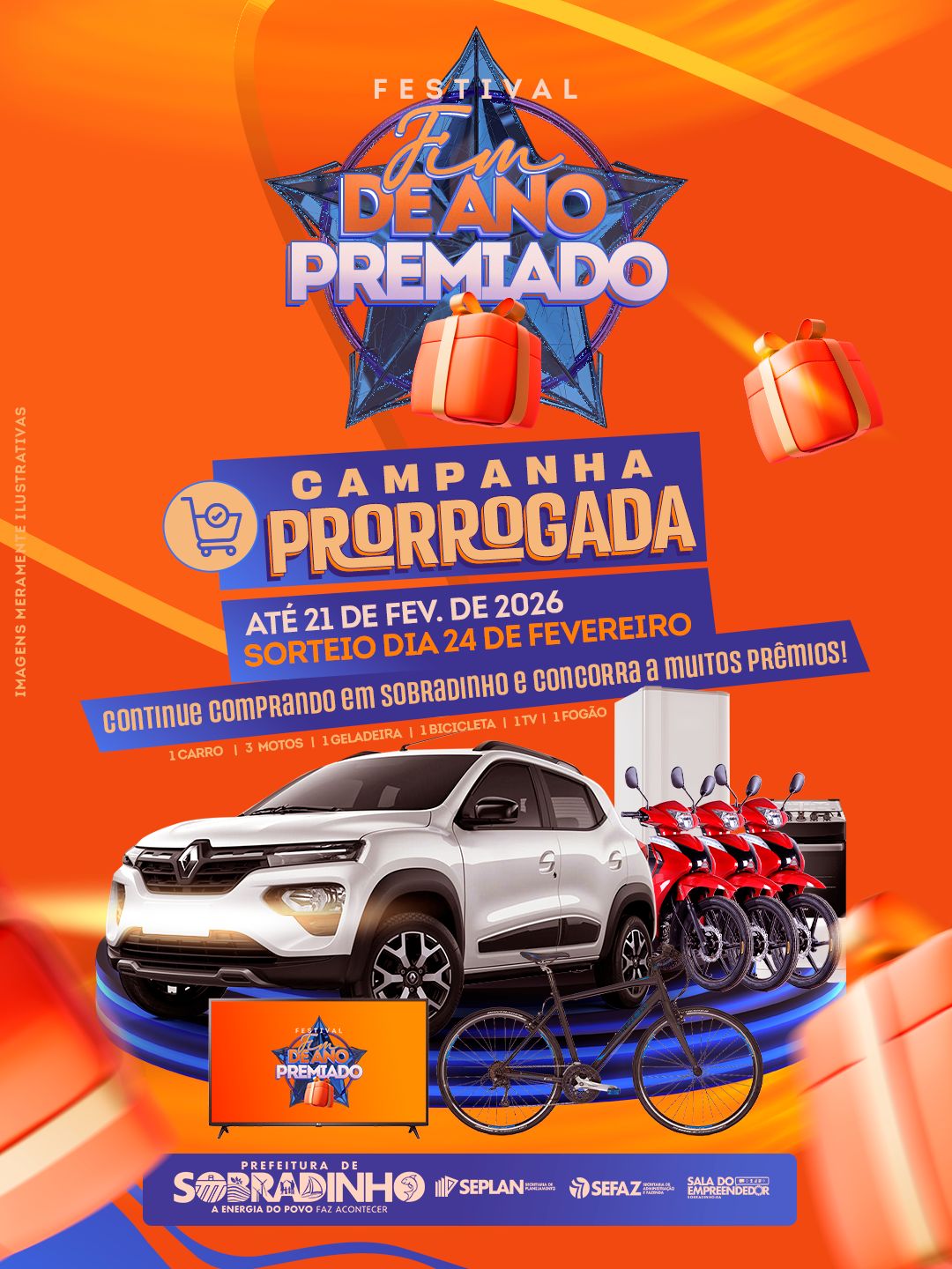 “Prorrogar o Festival Fim de Ano Premiado é fortalecer ainda mais o nosso comércio e valorizar quem empreende em Sobradinho. Cada compra feita aqui gera emprego, renda e desenvolvimento. Este ano avançamos com uma campanha histórica, com um carro 0 quilômetro e três motos como prêmios, algo nunca visto no município. Agradeço às secretarias que trabalharam de forma integrada, à CDL, aos empresários parceiros e, principalmente, à população que acredita na nossa cidade. Sobradinho cresce quando o comércio local é prioridade,” disse o gestor.