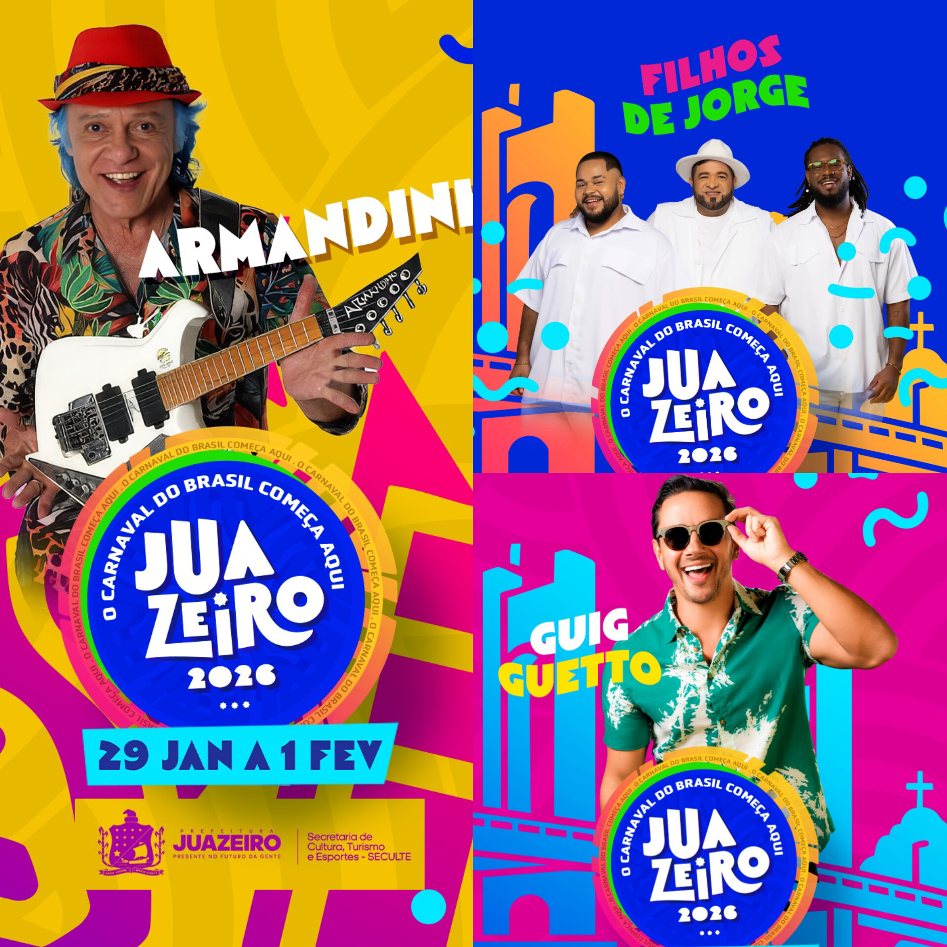 O Carnaval de Juazeiro 2026 acontecerá em dois grandes circuitos: o Circuito Ivete Sangalo, na Adolfo Viana/Orla I, e o Circuito Luiz Galvão, na Orla II. Também já estão confirmados Ivete Sangalo, João Gomes, Bell Marques, Psirico, Parangolé, Tony Salles, Pagodart, Thiago Aquino, Edson Gomes, Rafa e Pipo, Escandurras, Benzadeus, Lary, Guga Meyra, Luiz Caldas e Breno Casagrande.
