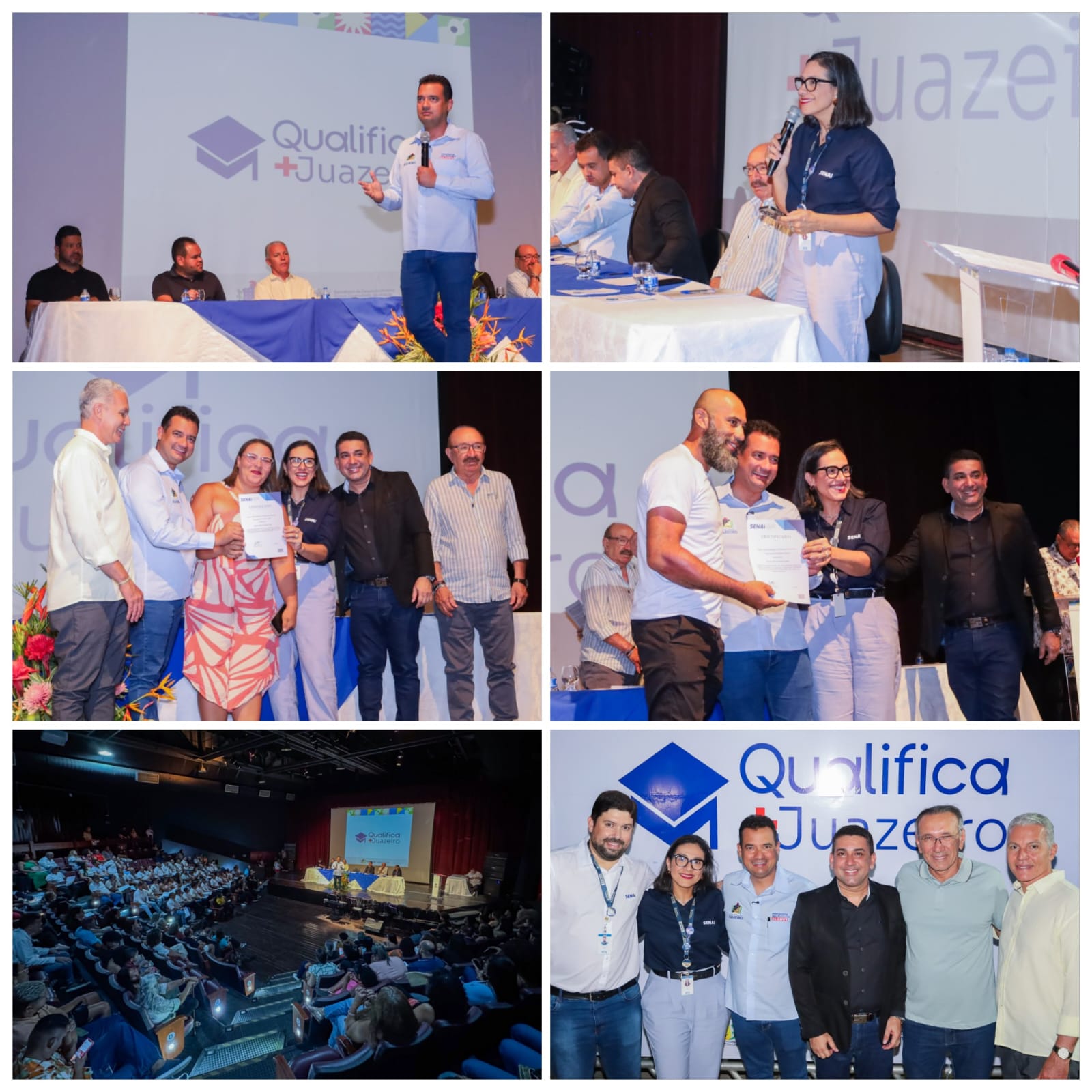 A Prefeitura de Juazeiro lançou, nesta terça-feira (13), o Programa Qualifica+ Juazeiro e realizou a entrega dos certificados aos alunos das primeiras turmas de cursos de qualificação profissional, em solenidade realizada no Centro de Cultura João Gilberto. A iniciativa integra uma estratégia da gestão municipal para ampliar oportunidades, gerar inclusão social e preparar jovens e adultos para o mercado de trabalho, por meio da parceria com o Senai, o Sesi e o IEL.