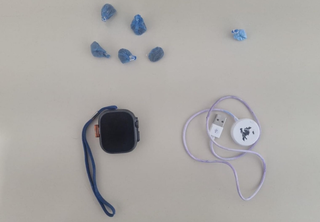 Durante o procedimento, os agentes localizaram um smartwatch, um carregador por indução do dispositivo, além de 1,4 grama de uma substância semelhante à maconha e 0,3 grama de material análogo à cocaína. Todo o material apreendido foi registrado e encaminhado para os trâmites administrativos e legais previstos.