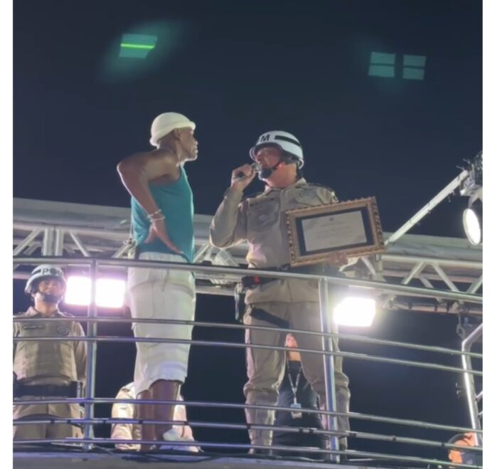 Cantor Flavinho, da banda Pagodart, recebe homenagem da Polícia Militar durante Carnaval de Juazeiro