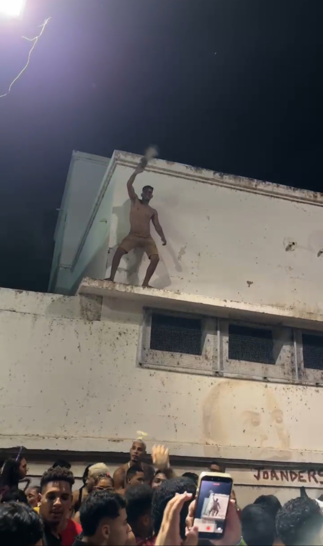 Um homem se arriscou ao subir na estrutura de um prédio localizado na orla 1 do município de Juazeiro, na região Norte da Bahia, na segunda noite do carnaval antecipado da cidade. A cena foi registrada pelas equipes do Portal Preto no Branco, que acompanhavam a festa diretamente da avenida.