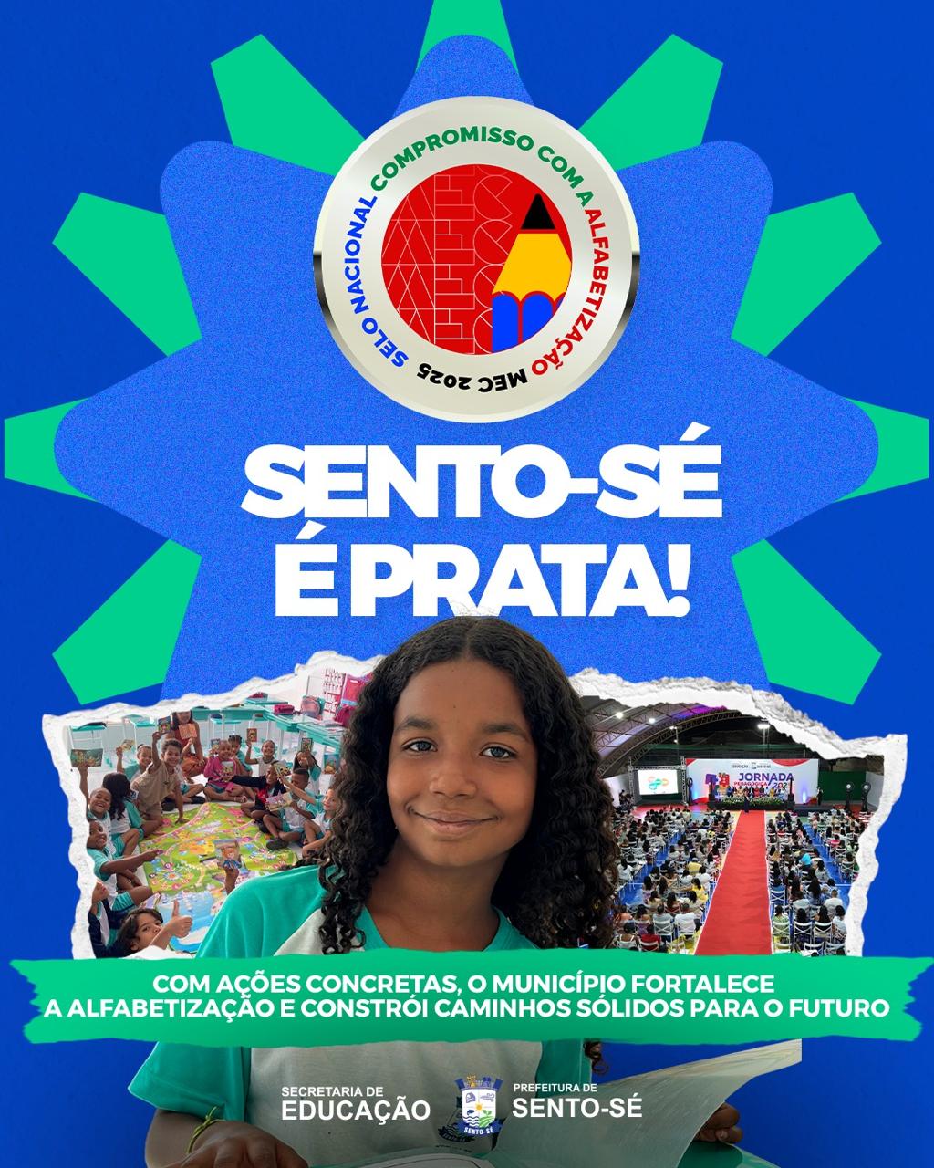 O município de Sento-Sé conquistou o Selo Prata do Programa Compromisso Nacional Criança Alfabetizada, reconhecimento que destaca os avanços alcançados nas políticas públicas de alfabetização e o compromisso com a garantia do direito de aprender na idade adequada.